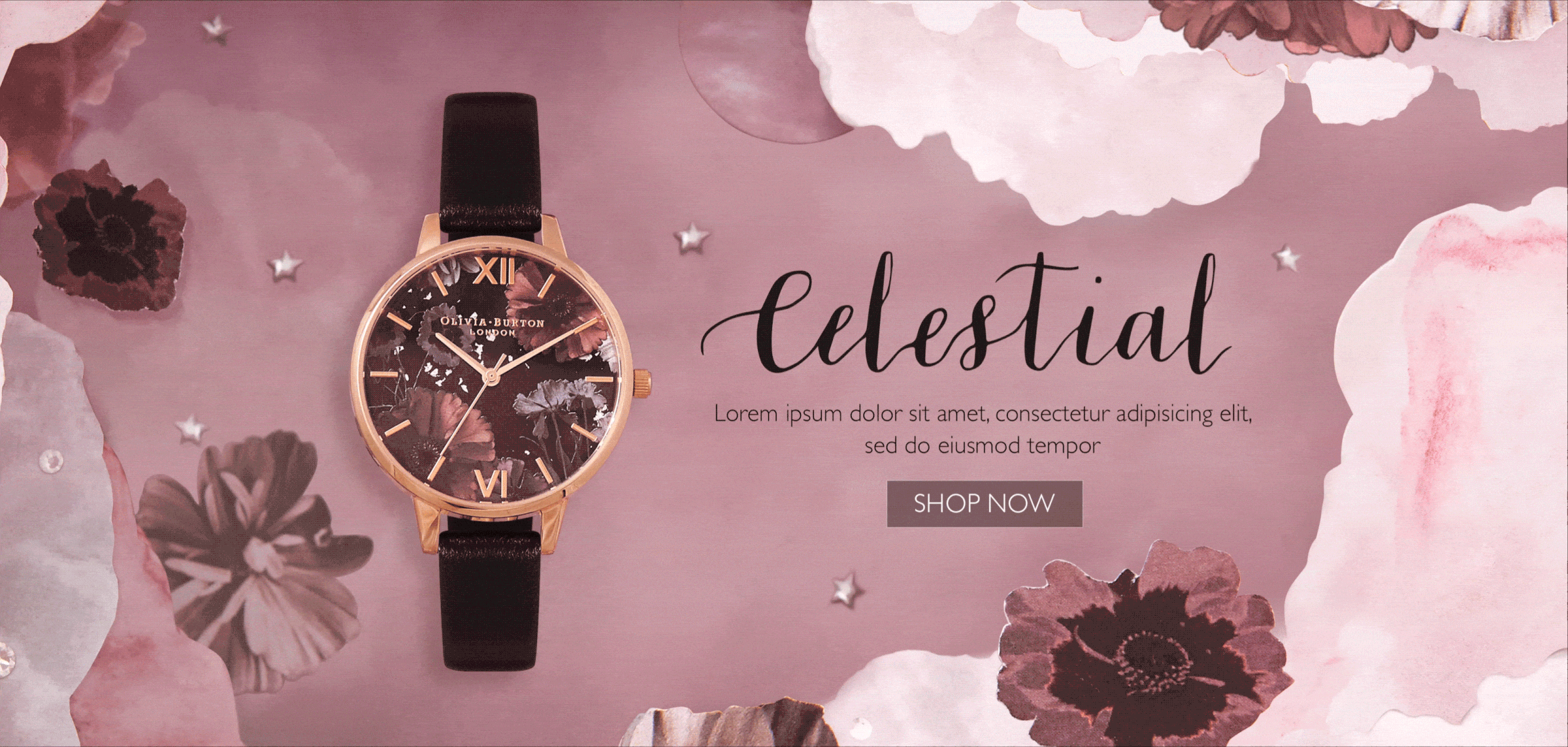 Conceptualised and executed digital touchpoints, spanning website visuals and UX elements that imbued Olivia Burton’s digital presence with refined femininity.